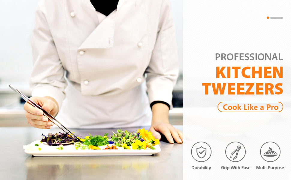 - WIDELY USED : It is essential to keep a professional set of food tweezers in your kitchen.It can help you a lot in cooking.Our tweezers set is useful for cooking, roasting and serving.