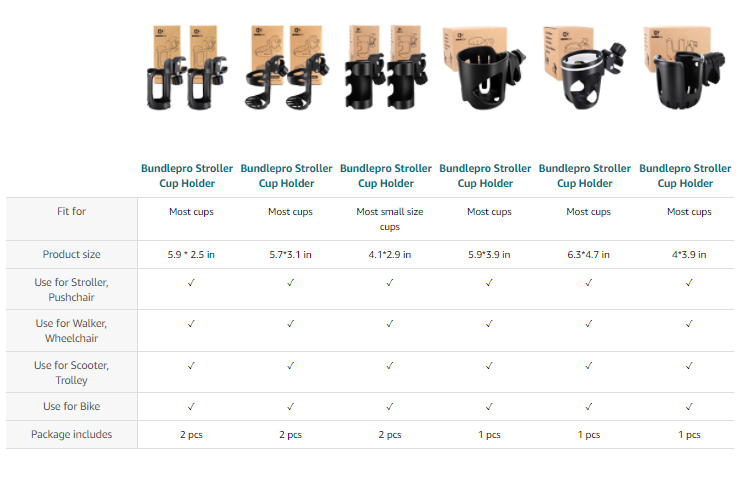 • WIDELY USED : The diameter of our cup holder is 3.54 in, which is suitable for most cup, mug and water bottle.The clamps of our universal drinks holder can be adjusted to 4.5cm, and rotated 360 degrees, which makes our cup holder so compatible that it can be used on 98% of baby strollers.Whether mounted on a stroller,wheelchair,trolleys, bike or walkers, our multi-functional cup holder can bring you a lot of convenience.