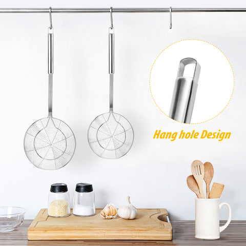 - Each package contains 2 kitchen Strainers which are perfect for blanching vegetables and meat, frying dumplings, French fries or serving hot pot dishes.