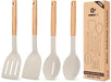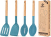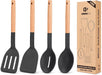 Pack of 4 Silicone Cooking Utensils Set, Non Stick Solid Spatulas and Heat Resistant Slotted Spoons with Wooden Handle