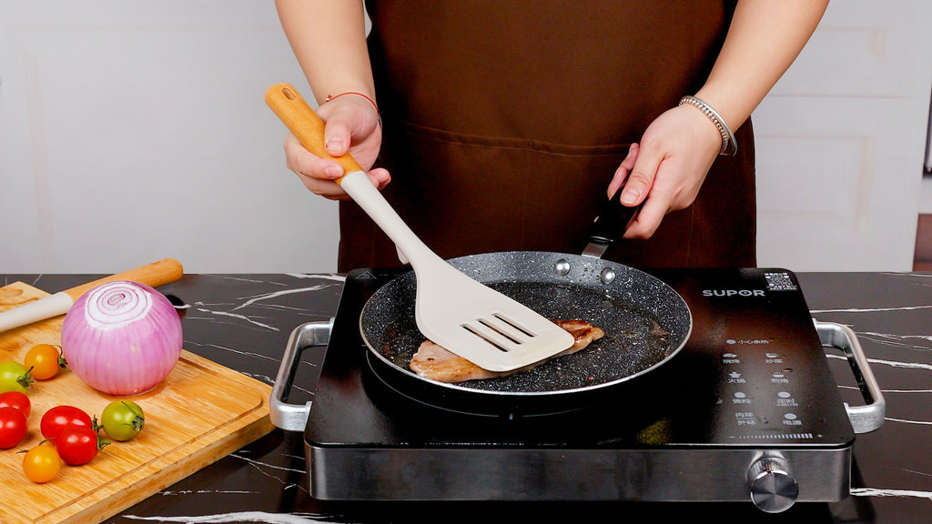 • Thoughtful Design: The little bulge design prevents the silicone head from touching the cooktop after cooking, effectively keeping the surface clean;Wooden handle keeps you away from the trouble of cooking utensils rusting or breaking