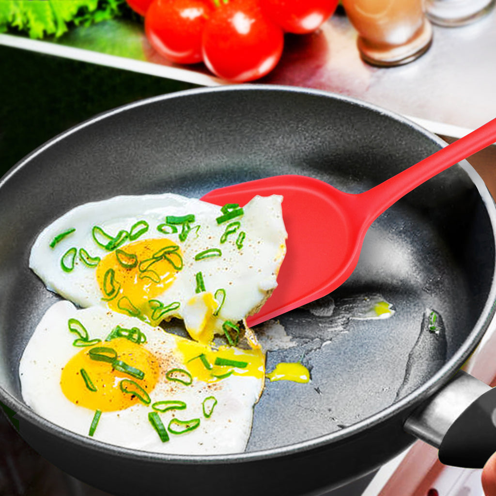 - Nifty Design : Seamless, one-piece form comes with a long handle and hanging hole for easy storage. Fingerprint design on the handle provides a comfortable, non-slip grip. Wide spatula head makes scooping, scraping and turning food more effortless.